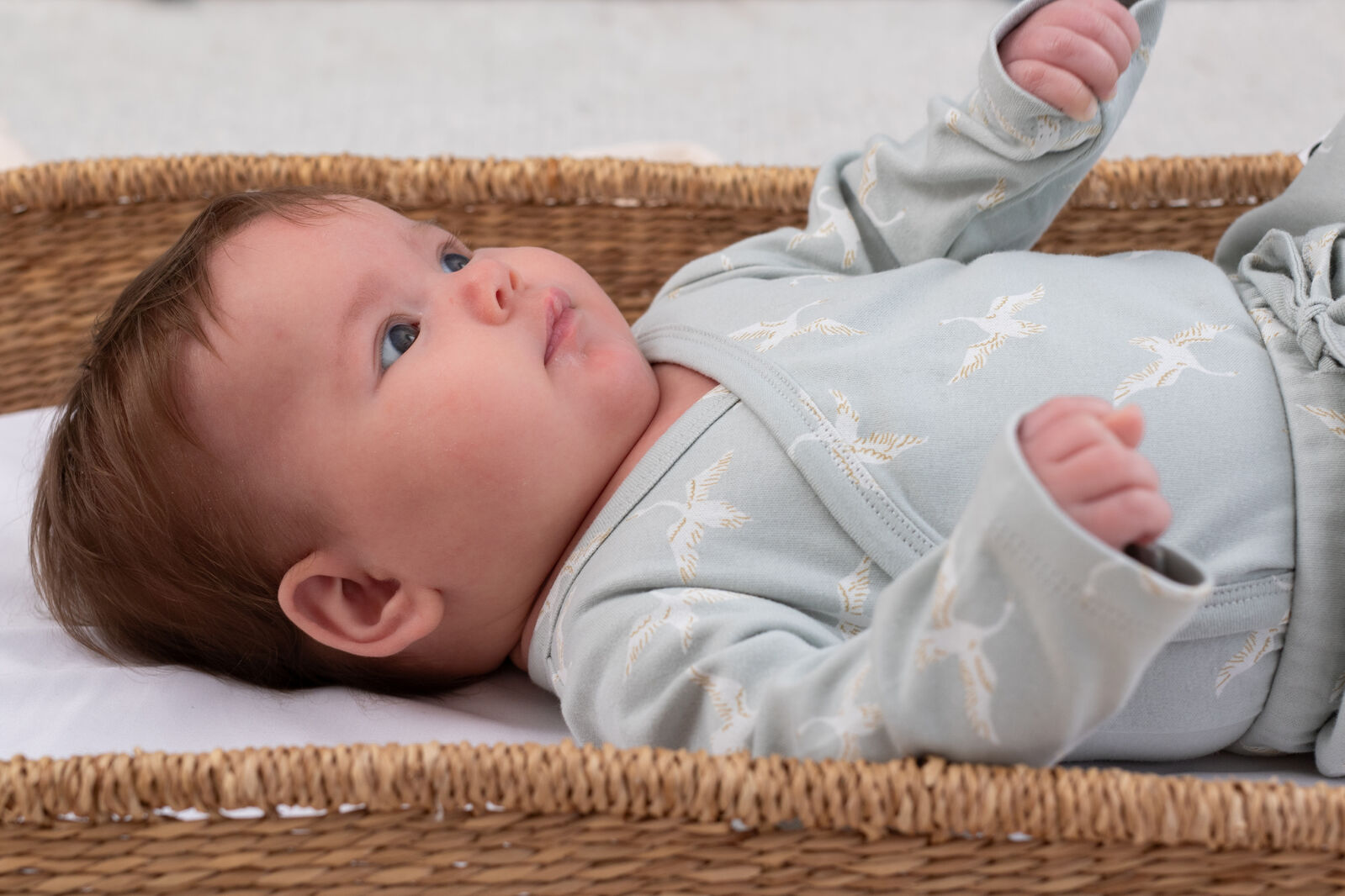 Wrap your little one in comfort and conscious design with our Swan Flight collection, Crafted from 100% organic cotton, each piece is made with a soft interlock knit gentle on delicate skin and kind to the planet. Our Kimono Style Long Sleeve Bodysuit Designed for newborn ease, the kimono wrap style allows for stress-free dressing with no need to pull over baby's head.