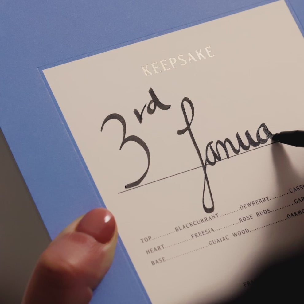 With fragrance notes inscribed on the front, it invites you to choose by instinct - what resonates, what lingers, what feels like home. Personalise it with a name, a moment, a sentiment.