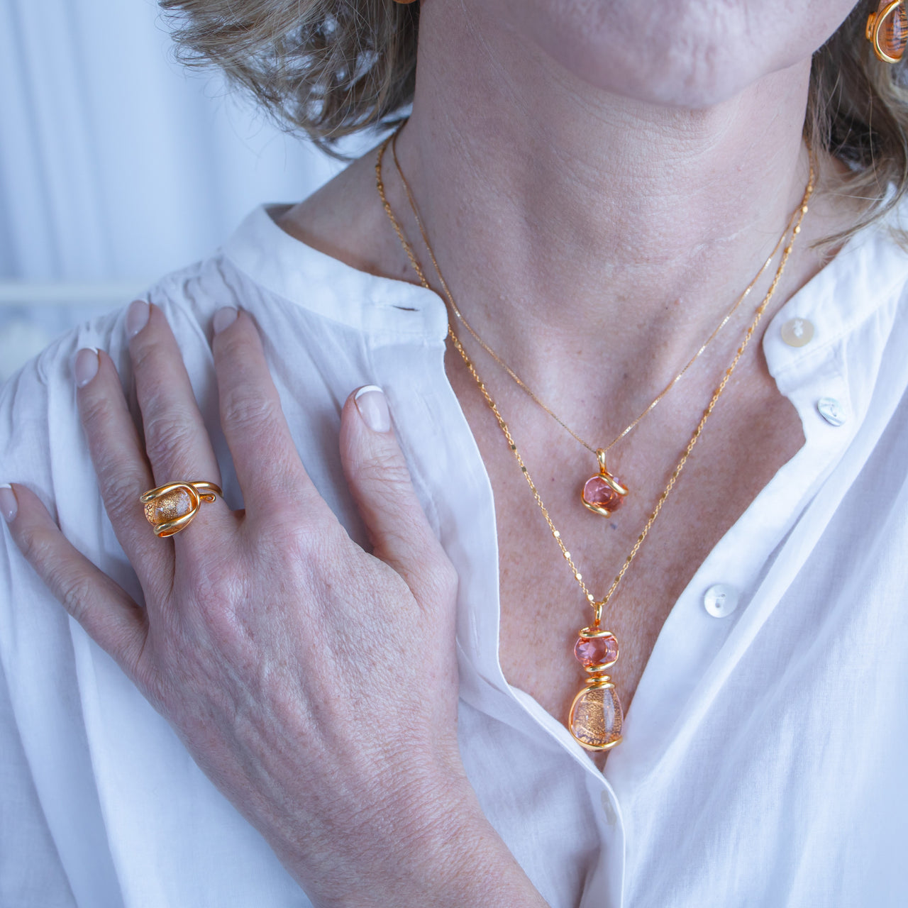 Rose pink Austrian crystal set in delicately wound 22ct Gold on 925 Sterling Silver.