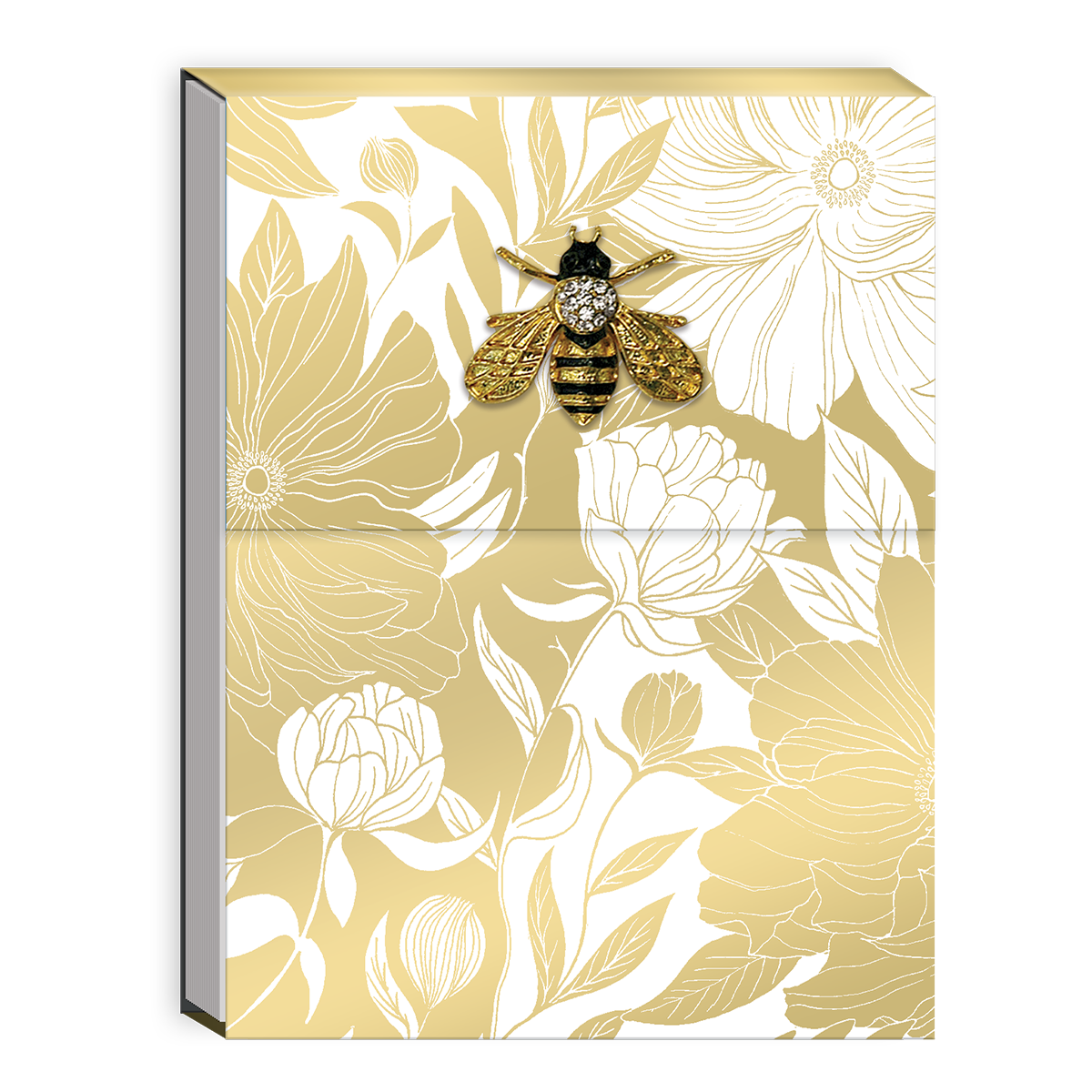 Our jeweled brooch notepads in golden tones are a wonderful way to keep notes close at hand. Inside, 75 printed color pages have border art elements from the cover.