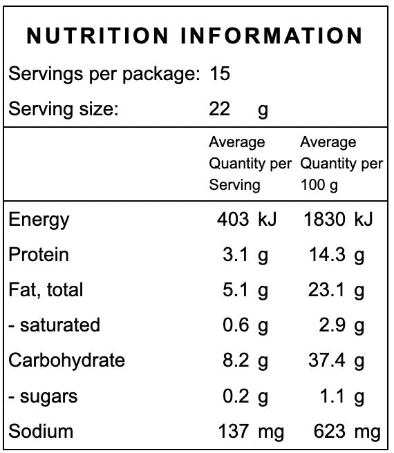Always a crowd pleaser, the delicate rosemary aroma with a hint of garlic is the perfect go to flavour for snacking and enjoying with your favourite dips, toppings and cheeses.