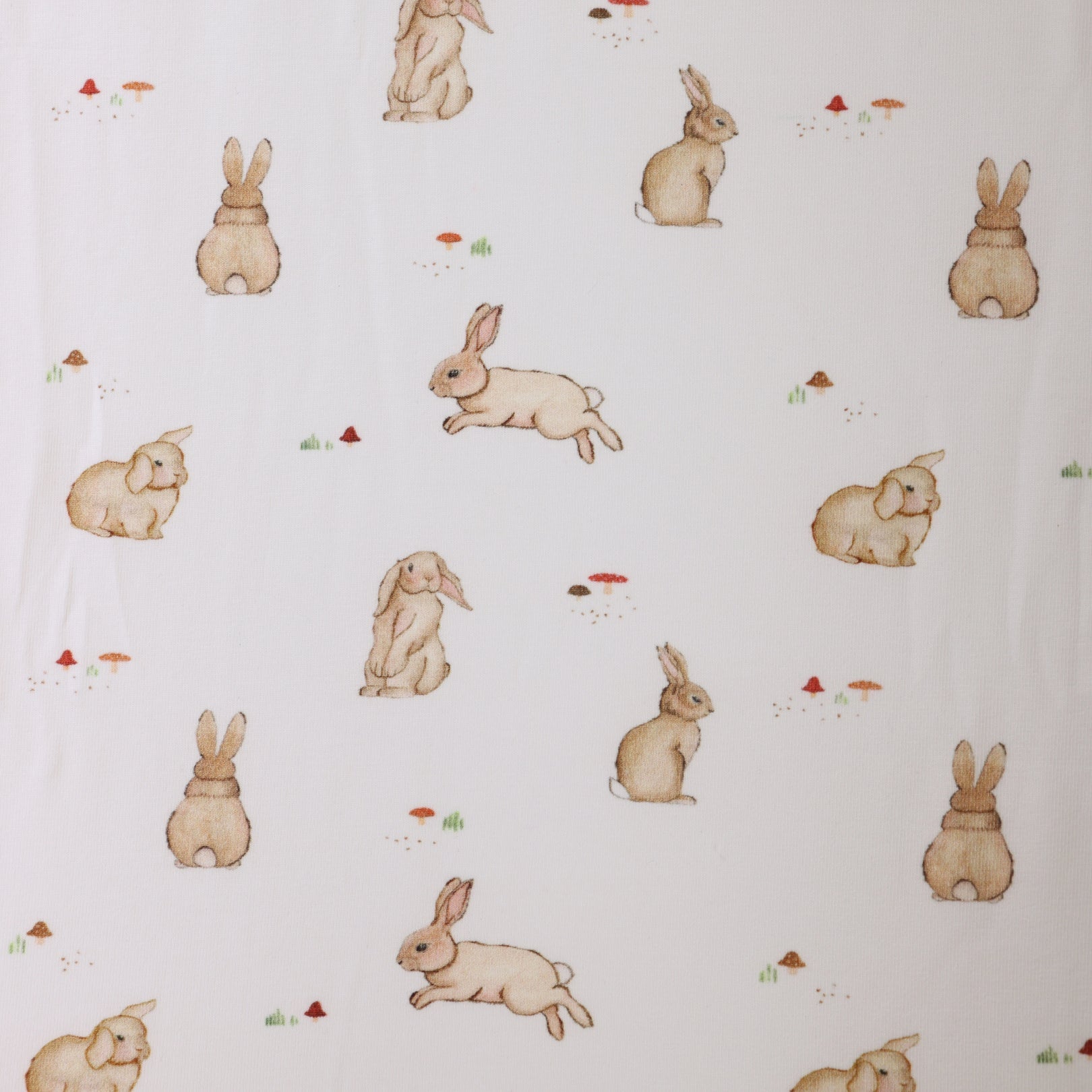 Whimsical yet timeless, this charming bunny print brings a touch of storybook magic to your nursery. Soft and sweet, this collection features the most adorable bunny rabbits playing amongst a woodland of tiny mushrooms.